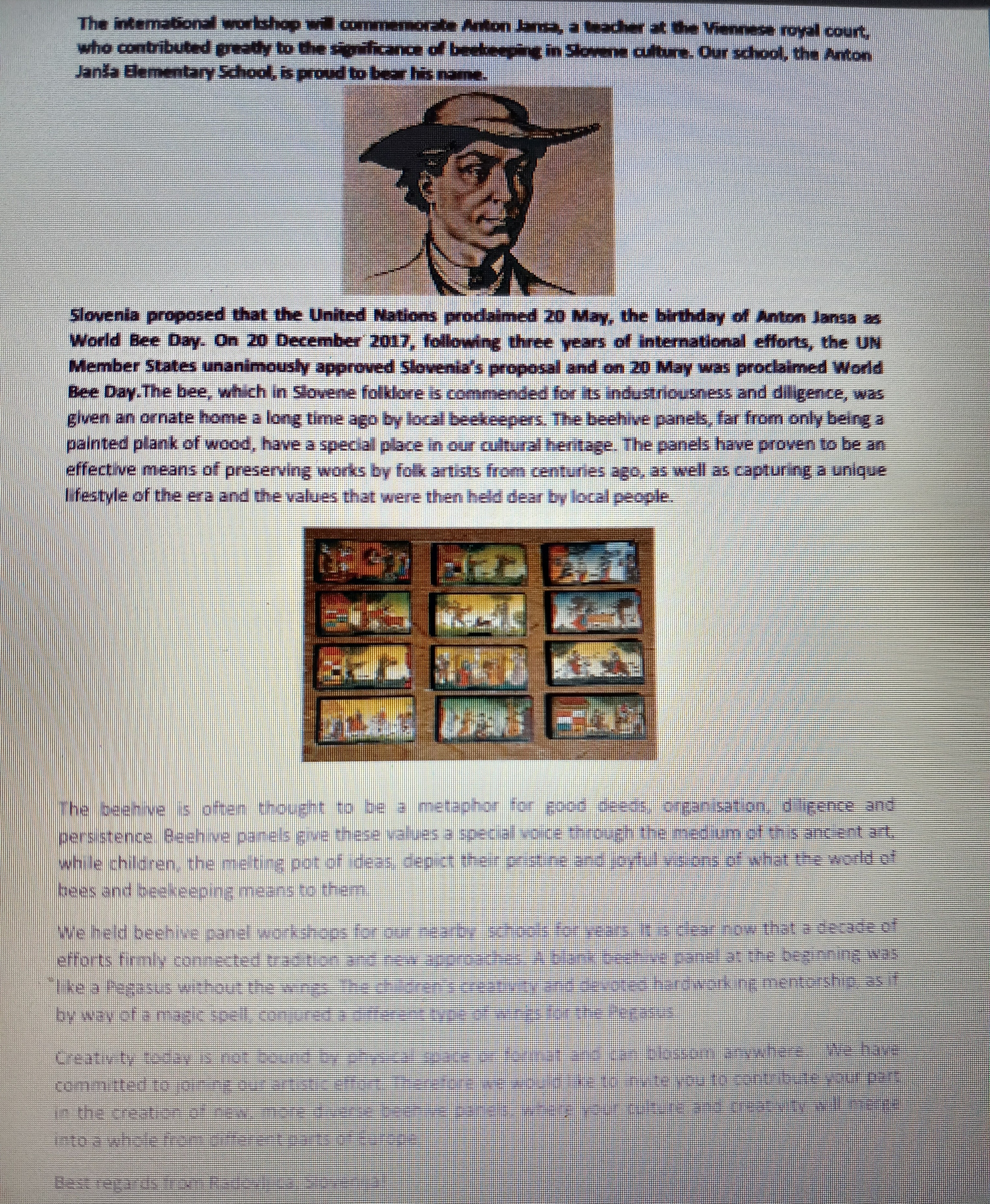 Vážené dámy a páni, milí priatelia, v mene Združenia občanov a spoločností Slovinskej republiky a Slovenskej republiky si Vám na žiadosť Základnej školy Antona Janša v slovinských Radovljiciach dovoľujeme zaslať informácie o medzinárodnej výtvarnej súťaži pre žiakov a študentov základných a stredných škôl.